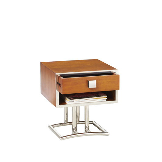 Beistelltisch / Nachttisch "Marisol" mit einer Schublade, Ablage und Chromgestell