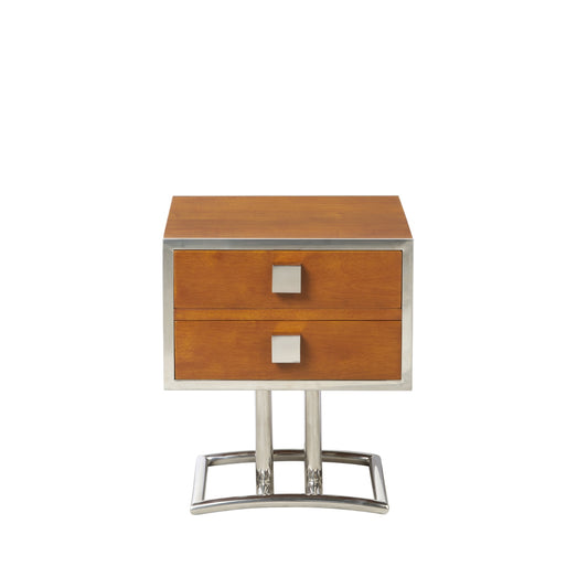 Beistelltisch / Nachttisch "Clay" mit Chromgestell 2 Schubladen