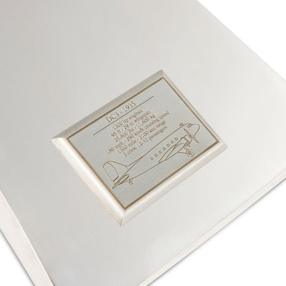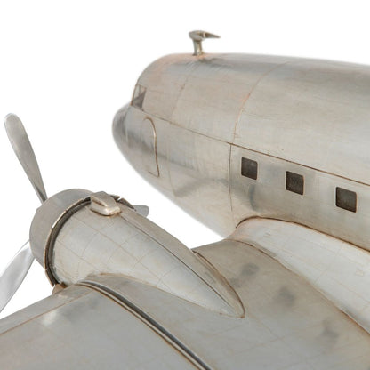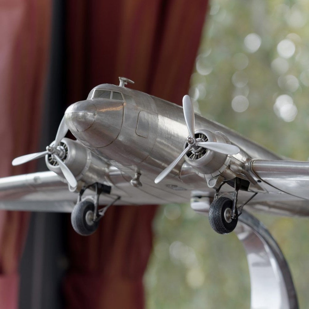 Die Dakota DC-3 ist eine echte Legende unter den Passagier- und Transportflugzeugen. Von der DC-3 wurden über 16.000 Maschinen gebaut und damit mehr als von irgendeinem anderen Passagier- oder Transportflugzeug. Selbst heute sind noch vereinzelt Maschinen im Amazonas-Gebiet oder der Wüste Gobi im Einsatz. Dieses in Handarbeit gefertigte Modell aus Aluminium besticht durch seine Detailtreue und ist auch für Sammler interessant, da nur einen limitierte Auflage verfügbar ist. Die Dakota DC3 stellt aber nicht nur für Luftfahrtsliebhaber ein tolles Einrichtungselement dar. Ob auf dem Schreibtisch oder als Hingucker im Bücherregal kann dieses Flugzeugmodell für das gewisse Etwas bei der Gestaltung der Wohnräume sorgen.