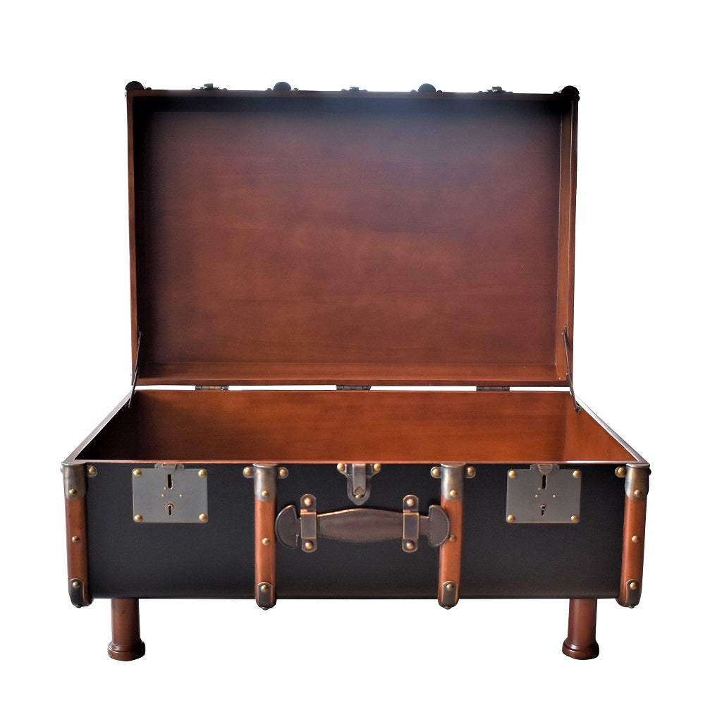 Die Stateroom Trunk Table Truhe von Authentic Models orientiert sich an den Reisetruhen wie sie um die Jahrhundertwende üblich waren und vermittelt augenblicklich ein Gefühl von Abendteuer- und Reiselust. Diese handgefertigte Truhe besticht durch die hochwertige Verarbeitung sowie die Funktionalität. Sie kann als Stauraum und kleiner Tisch genutzt werden. Die Truhe ist in jeder Einrichtung ein echter Hingucker!