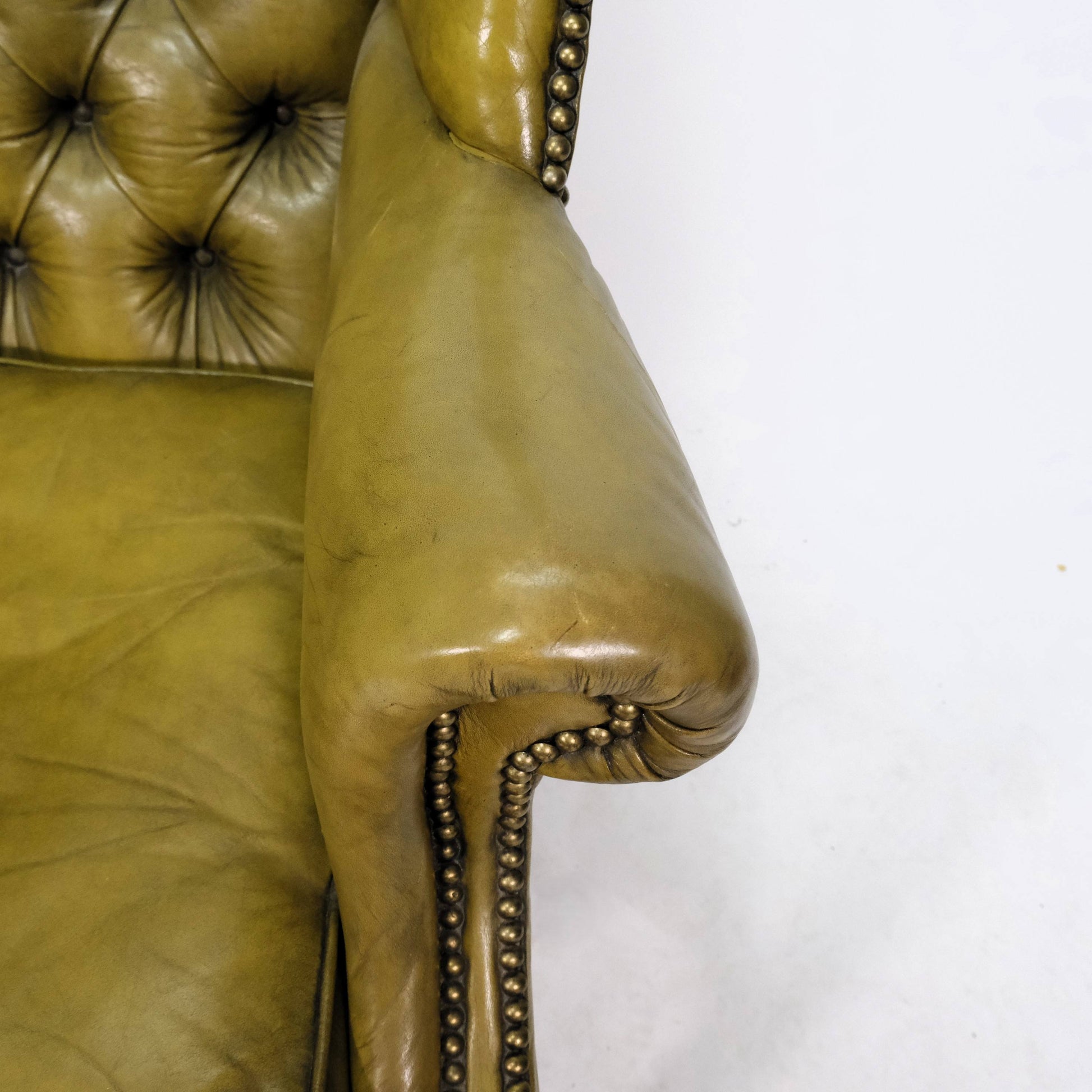 Dieser Chesterfield Sessel befindet sich in einem sehr guten Zustand mit leichten Gebrauchsspuren, wie z.B Falten im Leder (siehe Bilder). Der Sitzkomfort dieses Sessels ist hervorragend. Das Holz weist altersbedingte Gebrauchsspuren auf (siehe Bilder). Der Sessel stammt aus einem tierfreiem Nichtraucherhaushalt. Die Bilder sind Teil der Artikelbeschreibung.