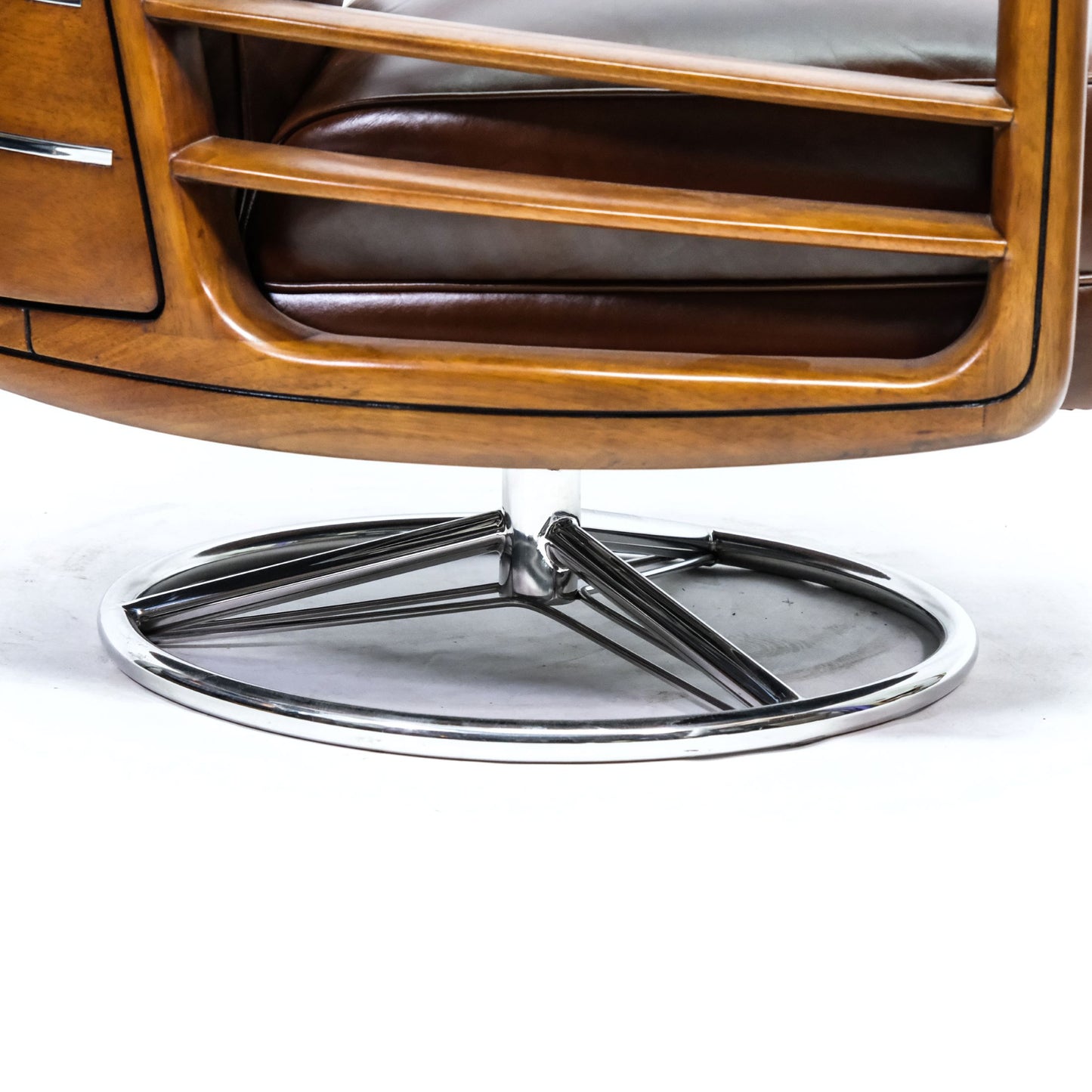Der Clubsessel "Marisol" besticht durch sein einzigartiges Design und angenehmen Sitzkomfort. Die lamellenförmigen Armlehnen und dezenten Details am Korpus lassen den Sessel leicht und elegant wirken. Durch die Drehfunktion ist das Modell "Marisol" in vielen Einrichtungskonzepten einsetzbar.