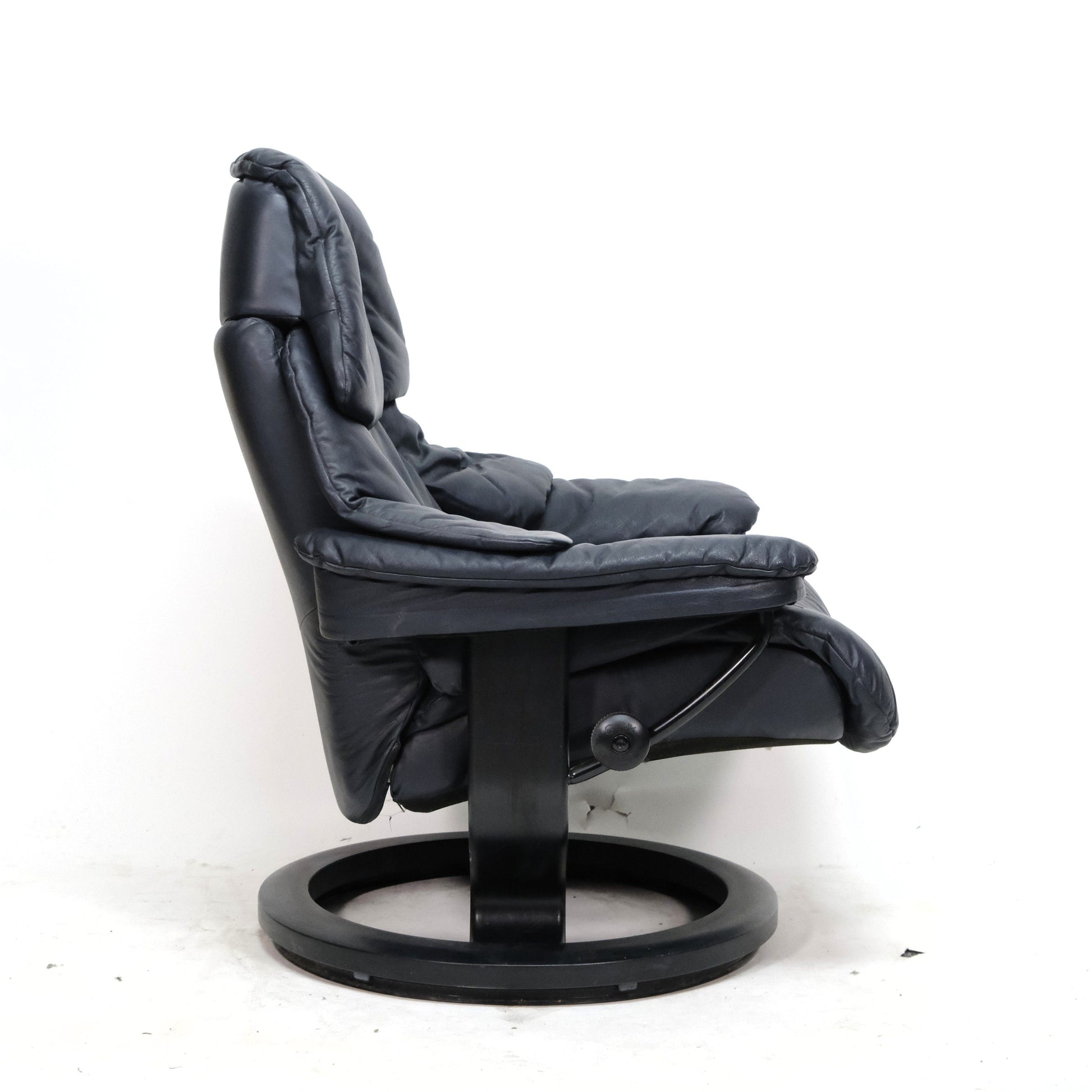 Dieser Ekornes Stressless Sessel Reno (L) mit Hocker befindet sich in einem sehr guten Zustand mit normalen altersbedingten Gebrauchsspuren, wie z.B. leichte Falten im Leder (siehe Bilder). Das Farbe des Sessel ist ein ganz dunkles blau. Die Funktionen und der Sitzkomfort sind bei diesem Sessel noch tadellos gut. Der Sessel stammt aus einem tierfreien- Nichtraucherhaushalt. Die Bilder sind Teil der Artikelbeschreibung.