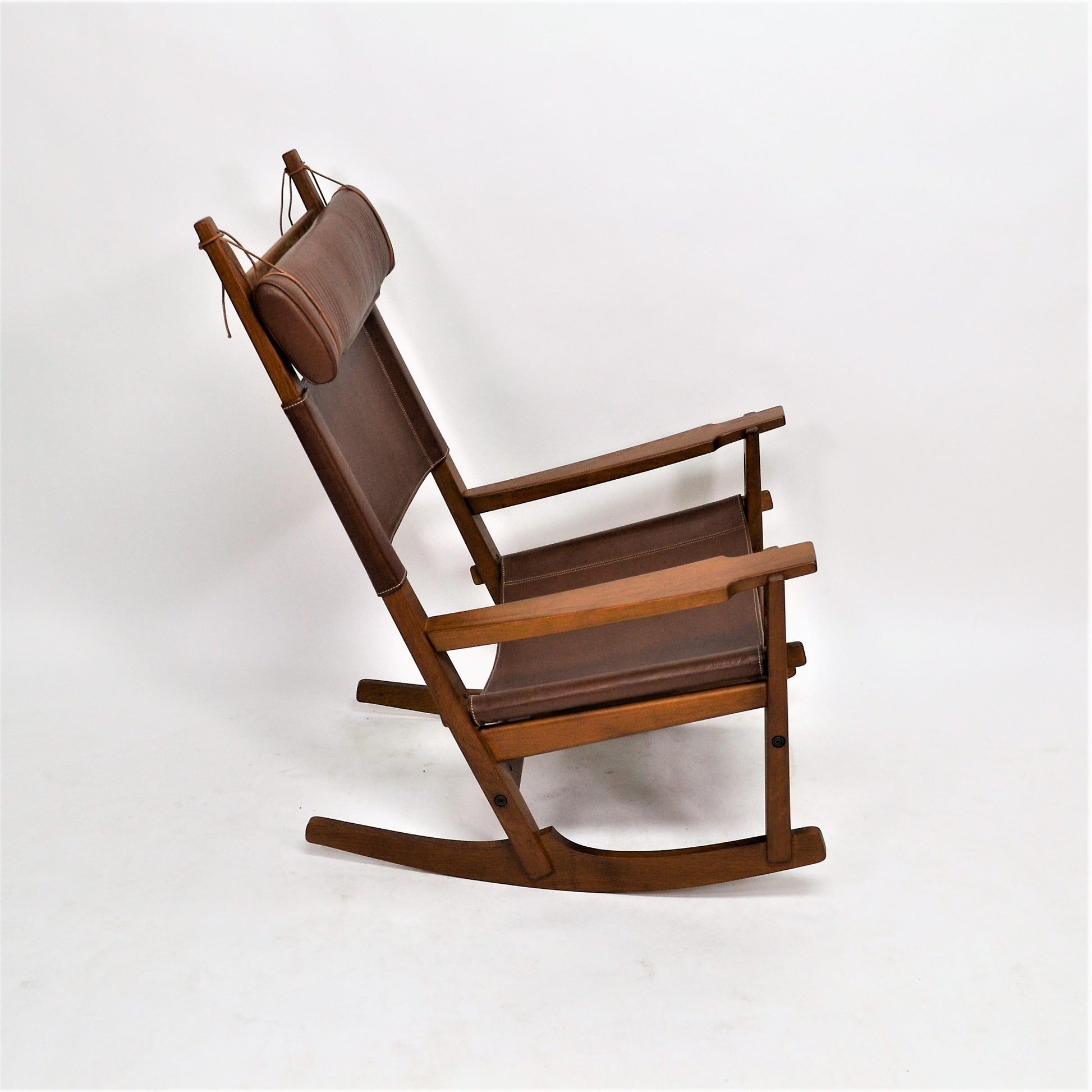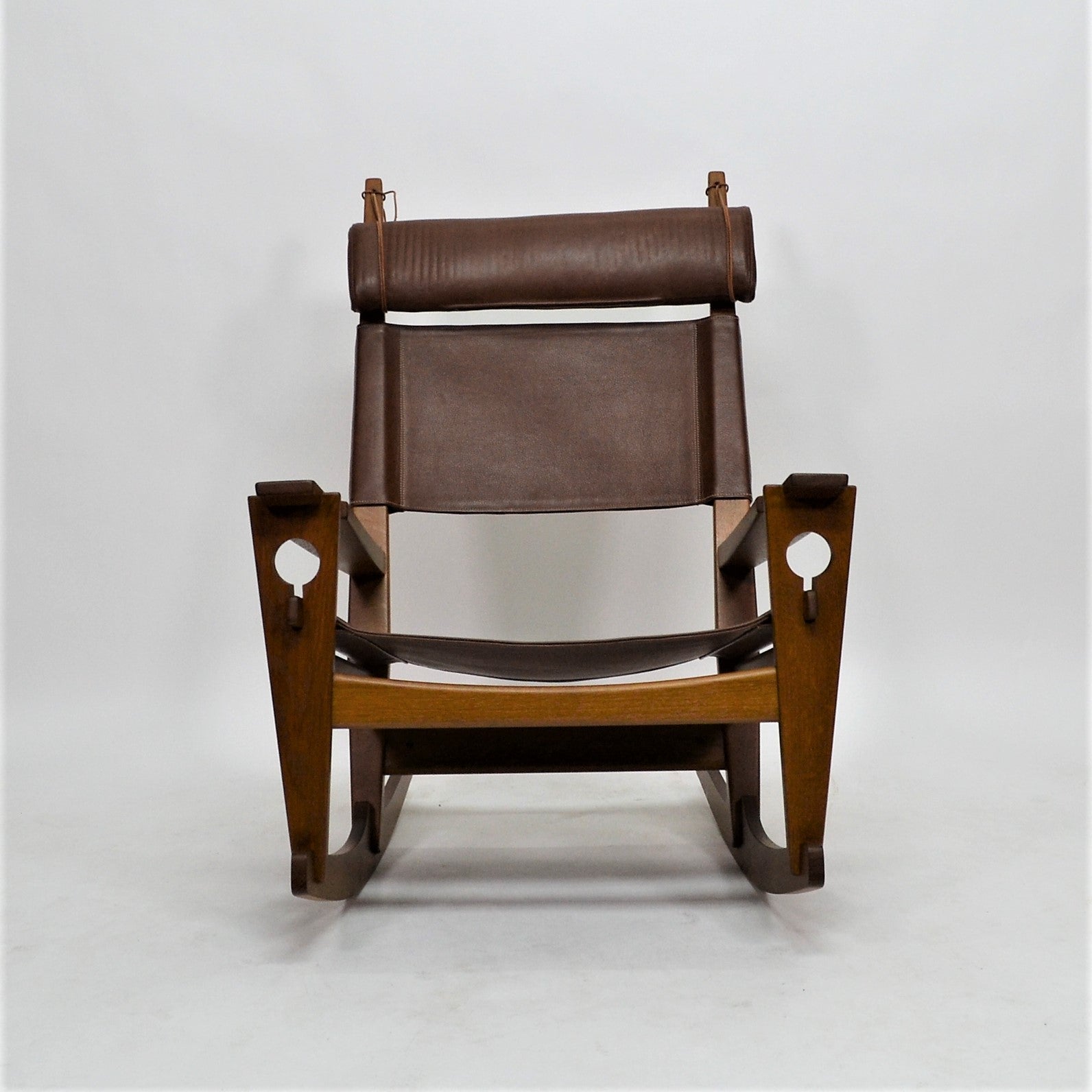 Dieser Schaukelstuhl GE673 Keyhole von Hans J. Wegner befindet sich in einem hervorragenden Zustand mit minimalen Gebrauchsspuren wie z.B. Falten im Leder (siehe Bilder). Löcher oder Risse hat der Stuhl keine. Die Funktionen und der Sitzkomfort sind hervorragend bei diesem Sessel. Der Schaukelstuhl stammt aus einem tierfreien Nichtraucherhaushalt. Die Bilder sind Teil der Artikelbeschreibung.