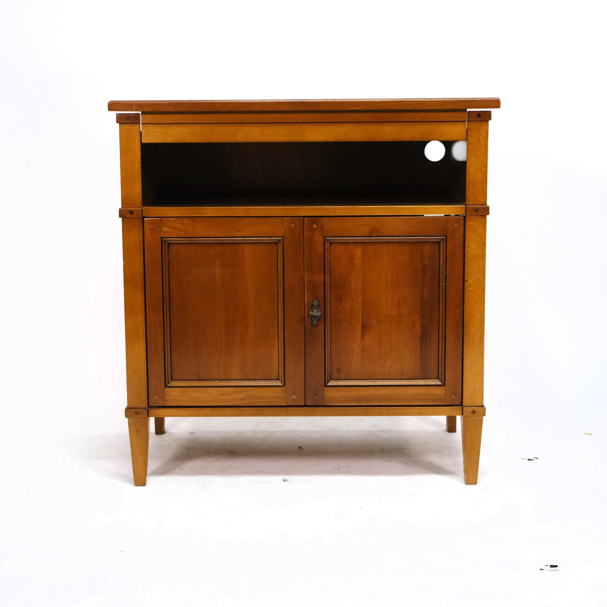 Dieser wunderschöne Fernsehkommode befindet sich in einem sehr guten Zustand mit leichten altersbedingten Gebrauchsspuren z.B leichte Wasserflecken im Holz (siehe Bilder). Diese Kommode wurde in sorgsamer Handarbeit in der Manufaktur Grange gefertigt. Diese Kommode bietet genügend Stauraum für Konsolen oder sonstige Player. Dieses Möbel ist ein wahres Schmuckstück in stilvollen Einrichtungskonzepten. Die Bilder sind Teil der Artikelbeschreibung.