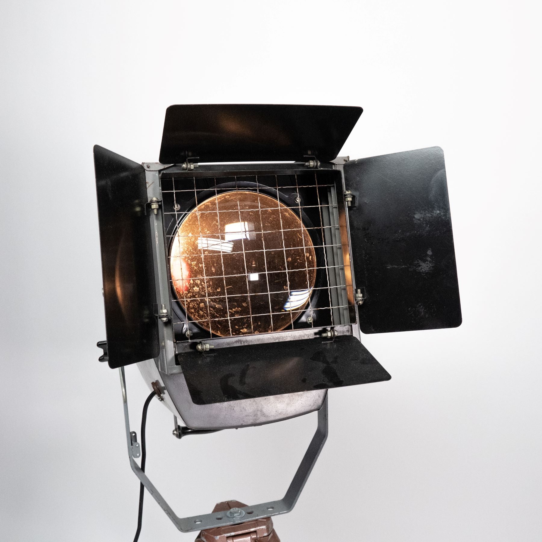 Dieser alte Theaterscheinwerfer befindet sich in einem sehr guten Zustand mit altersbedingten Gebrauchsspuren. Es ist ein zweiter Scheinwerfer vorhanden, welcher auch erworben werden kann. Mit diesem exquisiten Stück haben Sie das Richtige gefunden um Ihrer Einrichtung das gewisse etwas zu verpassen. Der Scheinwerfer bietet angenehm warmes Licht. Die Bilder sind Teil der Artikelbeschreibung. Die perfekte Beleuchtung bei 4Raum finden!